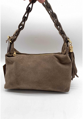 En stilren mockaväska i smidig storlek, med ett unikt flätat axelband och gulddetaljer. Perfekt att bära både till vardags och till festligare tillfällen – en tidlös favorit i garderoben!