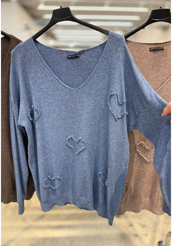 Superfin stickad tröja med diskret V-ringning och charmiga hjärtan som detalj. En mysig men ändå stilfull modell som passar lika bra till vardags som till en ledig fika på stan.