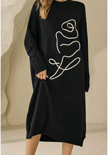 Stickad klänning med vackra broderidetaljer som ger en feminin och elegant touch. En mjuk och stretchig modell som passar lika bra till vardags som till fest.