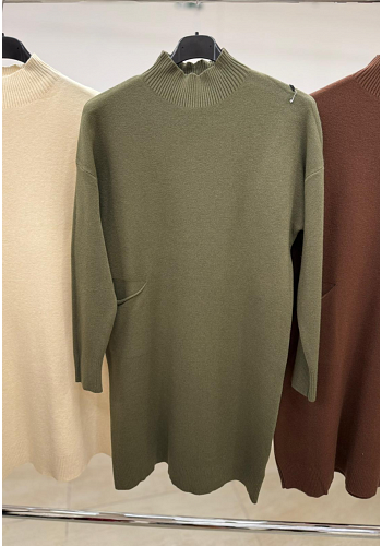 En stilren och mjuk stickad klänning med halvpolo och fickor – perfekt både till vardags och för kontorslooken. Lätt att styla med leggings eller boots för en komplett höstoutfit!