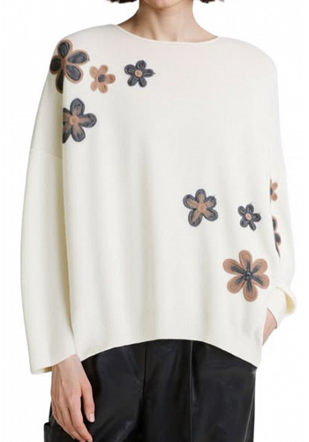En stickad favorit i säsongens finaste mix – med broderade blommor som ger en lekfull men stilren look.