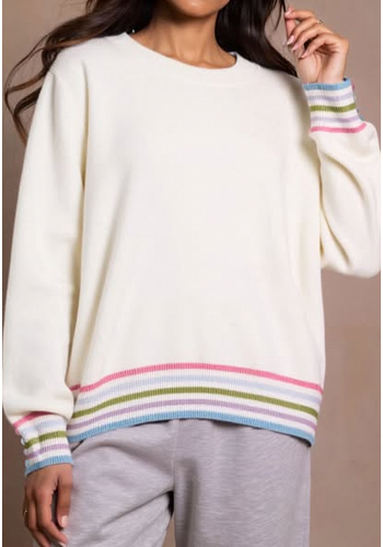 Enkel men lekfull tröja med färgglada muddar, perfekt för både hemmamys och vardagsstil.