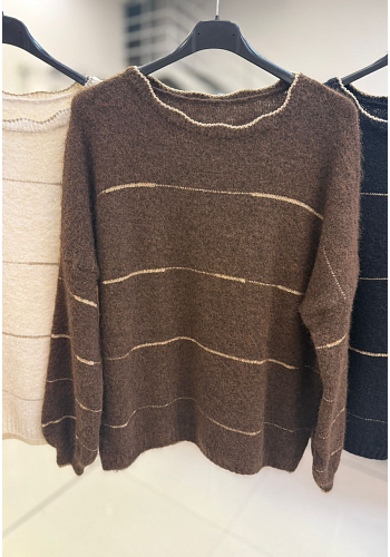 En mjuk och varm tröja med subtila ränder och lätt struktur i garnet. Perfekt för både vardag och lager-på-lager-stil under hösten och vintern.
