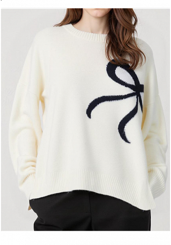 Mjuk och stilren stickad tröja med en kontrastfärgad rosett framtill, en söt men elegant detalj som gör hela looken! Lika fin till byxor som kjol.