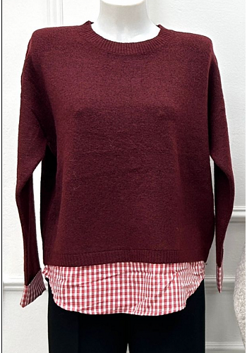 Modern stickad tröja med integrerad skjortdetalj som ger en lager-på-lager-look utan extra ansträngning. Perfekt både till jobbet och till vardags för en stilren outfit.
