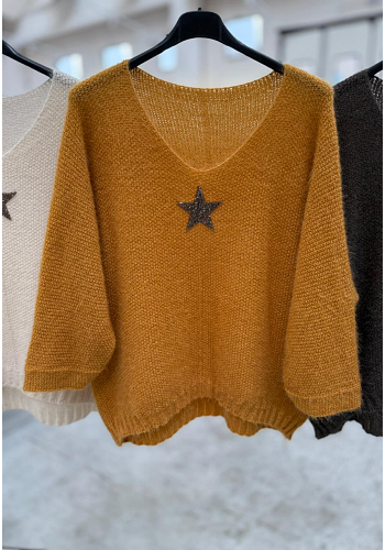 Mysig stickad tröja med en dekorativ strassstjärna framtill – en perfekt blandning av vardagskomfort och glittrig detalj. Styla med jeans eller kjol för en avslappnat chic look!