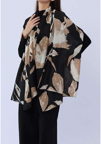 En luftig och mjuk scarf med stilrent bladmotiv i stora penseldrag. Perfekt både som sjal över axlarna eller klassiskt runt halsen, en mångsidig accessoar som lyfter vardagslooken.