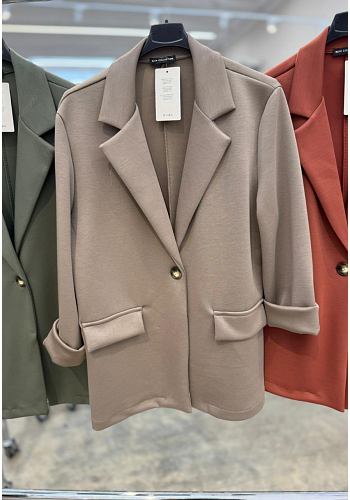 En stilren kavaj med lätt stretch och klassisk krage, tillverkad i Italien. Enkelknäppt med guldfärgad knapp och fuskluckor fram. Ärmarna kan vikas upp för en avslappnad look. Perfekt att bära både till vardags och fest.
