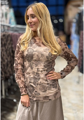 En stretchig och följsam mesh-topp med vackert mönster – perfekt att styla både till vardags och fest. Bekvämt underlinne ingår!