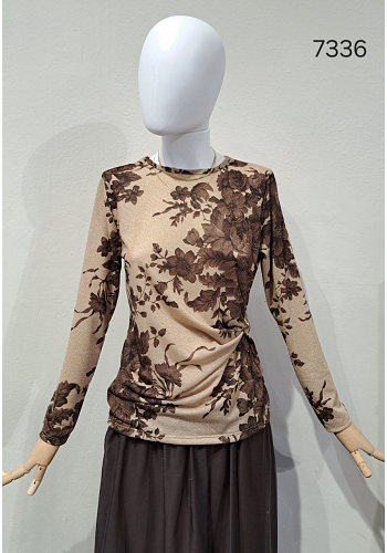 Detaljer: Stilren topp med vackert blommönster och smickrande drapering i sidan. Mjuk stretchkvalitet och rund halsringning.