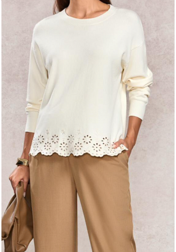 Stilren tröja med dekorativa blommor nedtill som ger en elegant och feminin detalj. Lätt utsvängd passform som sitter snyggt och bekvämt.