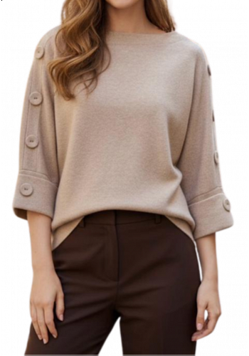 Modern och avslappnad tröja med snygga knappdetaljer längs ärmarna – perfekt för en stilren vardagslook. Den mjuka kvaliteten och lösa passformen gör den både bekväm och lätt att matcha.