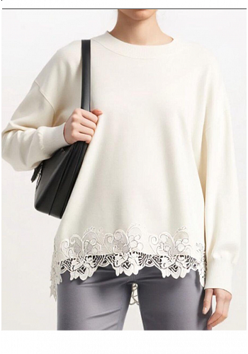 Mjuk och stilren tröja med vacker spetsdetalj längs nederkanten, en feminin touch till en vardagsfavorit. Bär som den är eller med skjorta under för en dressad look.