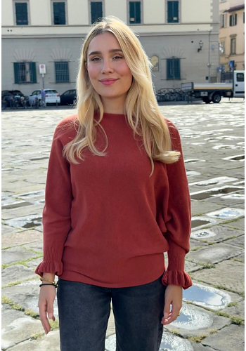 Elegant och feminin stickad tröja med volangdetalj i ärmslutet. Den mjuka viskosmixen ger en följsam passform och hög komfort – ett perfekt val för både vardag och kontor. En uppskattad modell i höstens mest efterfrågade färger.