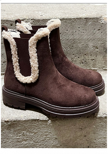 Trendiga boots i mockaimitation med varm teddyfodring längs kanterna för både stil och komfort. En rejäl yttersula gör dem praktiska för höst- och vinterbruk – ett populärt val för den som vill kombinera mode och funktion i vardagen.
