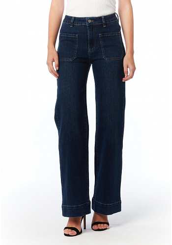 Snygga raka jeans med hög midja, synliga fickor fram och bred fåll nertill – både trendiga och bekväma i ett!