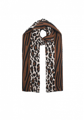 Trendig, plisserad halsduk med mix av leopard och zebramönster. Lätt, mjuk och perfekt för lager-på-lager-styling!