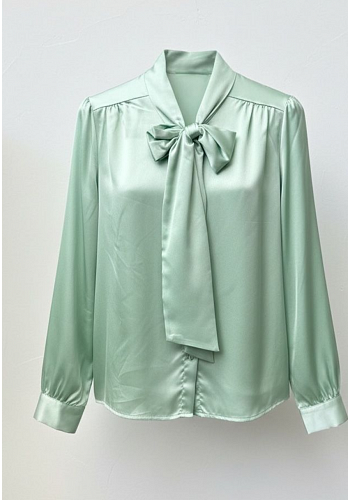 Elegant blus med vackert fall och dekorativ knytning vid halsen. Det lätt glansiga tyget ger ett stilrent och lyxigt uttryck, vilket gör modellen perfekt både till vardag och fest. En tidlös favorit som är enkel att styla till många olika tillfällen.