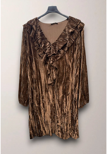 Festlig klänning eller tunika i stretchig velour med strass och volang vid ringningen – en glammig favorit för allt från julmingel till middagsdejter.