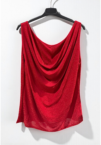 Glittrigt linne med elegant vattenfallskrage och bredare axelband – perfekt både till festkvällar och högtider. Den stretchiga kvaliteten gör att det sitter bekvämt och snyggt på många olika kroppstyper. En stilsäker bästsäljare i flera färger.