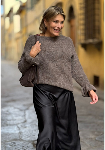 Superfin och mjuk stickad tröja med liten trumpetärm. Oversize-look som faller snyggt – perfekt till jeans eller kjol. Fantastiskt pris för en så stilren och trendig modell.