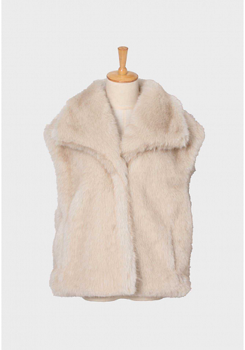 En mjuk och lyxig fuskpälsväst med stående krage – perfekt att bära över stickat eller skjorta för en varm och elegant lagerlook.