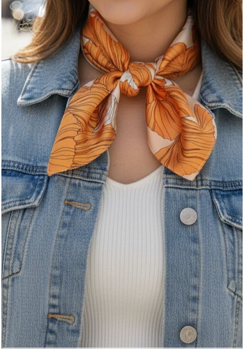 Elegant scarf med grafiskt blomtryck i jordnära och dämpade färger. Perfekt för både vardag och kontor – ger din stil ett sofistikerat lyft.