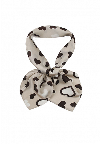 Romantisk scarf med lekfulla hjärtmotiv i flera färger. Mjuk och följsam – perfekt att knyta runt halsen, väskan eller i håret för en charmig touch.