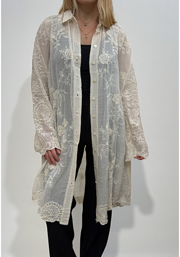 Luftig och broderad lång skjorta som även fungerar som klänning. En mångsidig modell som passar perfekt till svala dagar och för en avslappnad lager-på-lager-stil.