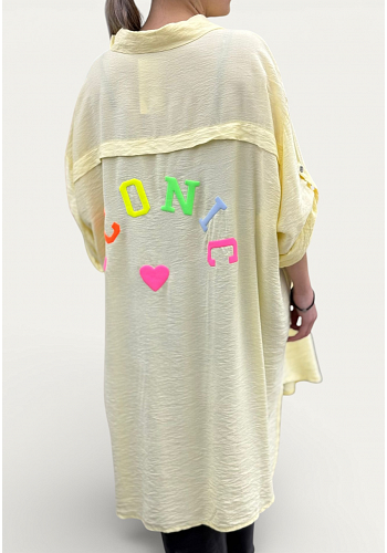 Oversize skjorta med färgstarkt “Iconic”-tryck på ryggen som ger en lekfull och trendig look. Luftig och bekväm modell med fint fall – perfekt som statementplagg i säsongens sortiment.