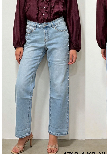 Trendiga jeans med dekorativa nitar längs sidor och linning som ger en edgy touch. Stretchig och bekväm modell som passar perfekt både till vardag och fest.