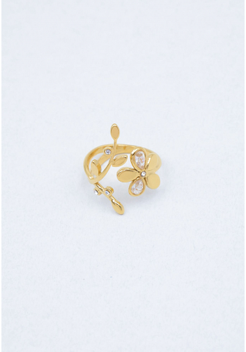 Elegant ring med blomformad design och gnistrande stenar. Den justerbara passformen gör den bekväm att bära och enkel att anpassa. En tidlös accessoar som ger ett lyft till varje outfit, perfekt för både vardag och fest.