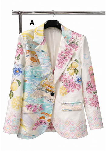 Stilfull kavaj med färgstarkt och lekfullt print som ger ett unikt och somrigt uttryck. Perfekt att bära över en enkel topp eller klänning för att skapa en trendig outfit.