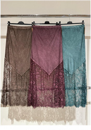 Mjuk och följsam kjol i viskos med spetsdetaljer och oregelbunden skärning som skapar ett skirt och elegant uttryck för både vardag och fest.