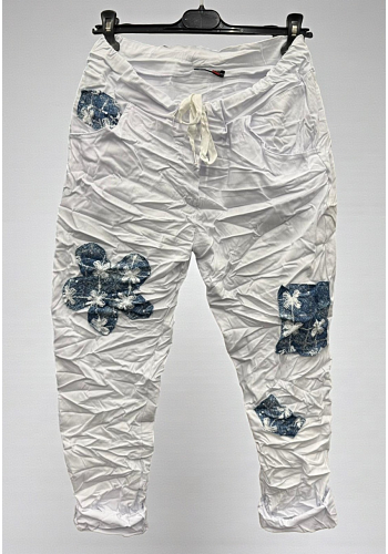 Superbekväma och coola byxor med dekorativa denimlappar och bakficka. En perfekt balans mellan avslappnad och trendig stil – ett givet favoritplagg i garderoben.