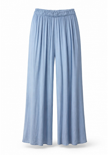 Skön och mjuk byxa i viskos med resår i midjan och ett fint fall. Luftig modell med vida ben som ger en avslappnad och elegant look.