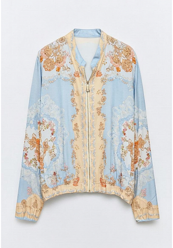 Lätt och elegant bomberjacka i mjukt och följsamt material. Ofodrad modell med dragkedja och dekorativt mönster – perfekt som sommarjacka över klänning eller topp.