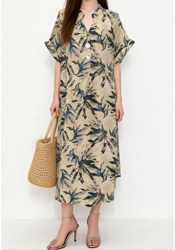 Luftig och skön klänning i mjuk bomull med V-ringning och knappar framtill. Det stilrena bladmönstret ger en somrig och elegant känsla – perfekt för både vardag och semester.