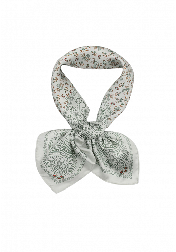 Klassisk scarf med paisleykant och småblommigt mönster som ger ett elegant och tidlöst uttryck. Den silkeslena känslan gör den lika skön att bära som den är vacker att se på. Perfekt att styla runt halsen, i håret eller knuten på väskan för en extra fin detalj.