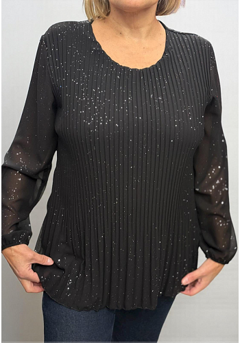 Vår eleganta plisserade chiffonblus med guldsilver-stänk är tillbaka – perfekt för julens alla tillfällen! En luftig och festlig modell som kombinerar glans, komfort och tidlös stil.