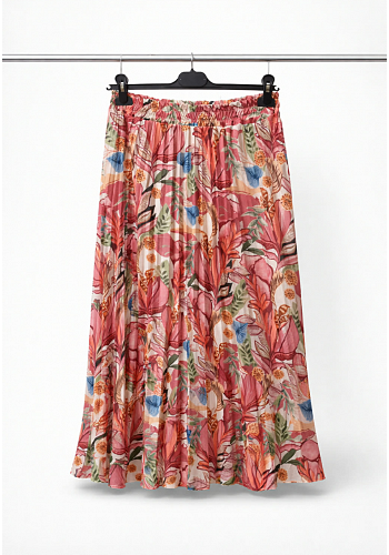 Ljuvlig plisserad kjol med levande mönster och fint fall. Resårmidja för bekväm passform – perfekt för både vardag och sommarens tillfällen.
