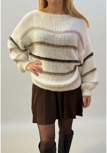 Supermjuk, klifri stickad tröja med breda ränder i höstiga toner. Perfekt för kalla dagar – lika snygg till jeans som till kjol!