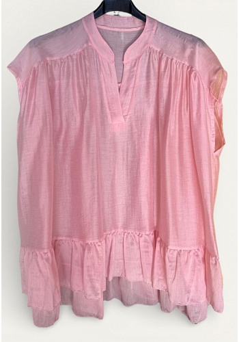 ÄRMLÖS VOLANGBLUS I LYOCELL & LINNEMIX