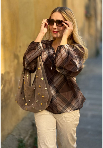 Luftig och stilren blus i rutigt mönster med knytning fram. Perfekt både till vardags och för en avslappnad chic look.