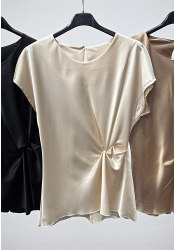Elegant topp i glansigt satintyg med draperad detalj i sidan som ger en smickrande silhuett. En stilren modell som passar lika bra till vardag som till fest.