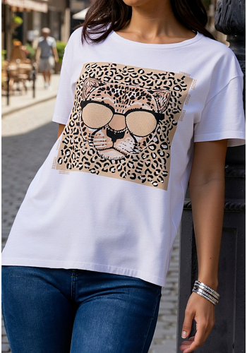 Mjuk och stretchig t-shirt med trendigt leopardmotiv som ger en cool och modern look. Perfekt till jeans eller kjol för en avslappnad men stilren outfit.