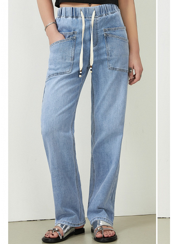 Sportig jeansmodell med resår i midjan, knytband samt dubbla framfickor och bakfickor. Bekväm passform med mjuk känsla – perfekt för ett avslappnat men trendigt sortiment.
