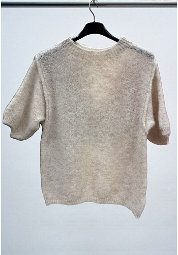 Kortärmad stickad tröja i mjuk och behaglig kvalitet med rund halsringning och diskret struktur. En stilren och lättburen modell som fungerar perfekt som layering-piece året runt, lika fin för sig själv som över skjorta eller klänning.