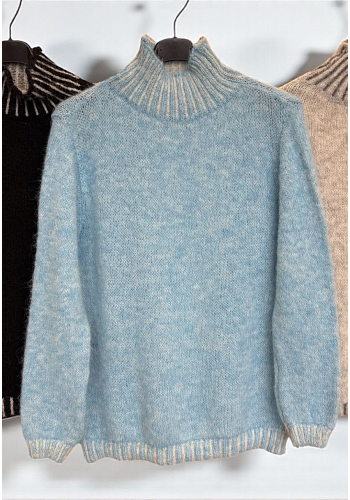 Mjuk och trendriktig stickad tröja med ribbstickad polokrage samt ribbstickade ärmslut och nederkant. Ett tidlöst basplagg som passar perfekt för säsongens lager-på-lager.