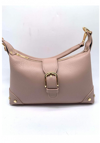 Elegant modell i mjuk mocka med guldfärgade detaljer och dekorativt spänne framtill. Perfekt vardagsväska med tidlös design som passar alla tillfällen.